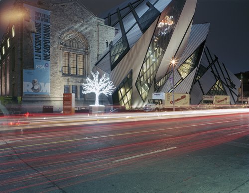 The Toronto streets in the small hours of the morning contain few people, and allow entrance into a unique frame of perspective. The buildings, the lights, and the captive trees all interact and reflect off of one another, showing harmony and struggle.